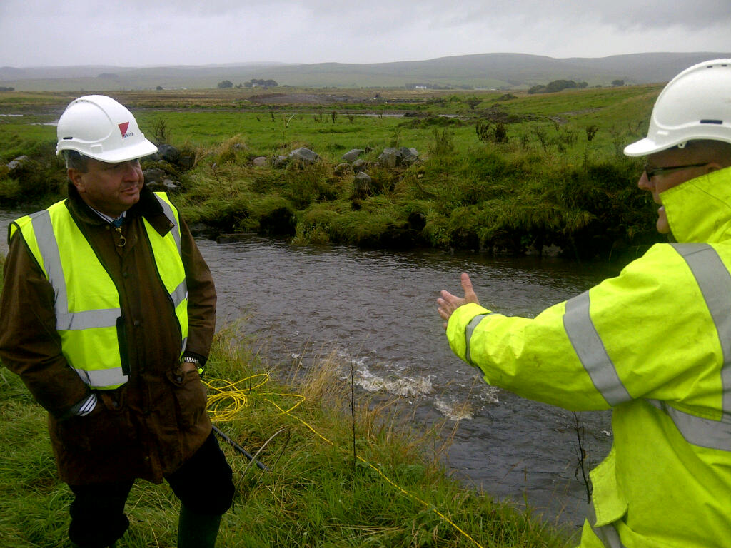 MSP Jim Hume visited the River Nith on Monday 24th September 2012.  The visit was planned to coincide with the Freshwater Fisheries and Aquaculture Bill currently being considered by the Scottish Government.  Alan Wells, Policy and Planning Officer for the Association of Salmon Fishery Boards also attended the visit and we were able to demonstrate some of the works of the Nith Board and Trust, whilst on a field visit to Kier’s Greenburn mine. It is always important that our politicians are aware of the work that Fishery Boards and Trusts do throughout Scotland but especially so now, when the Freshwater Fisheries and Aquaculture Bill is progressing.  Both the Nith Board and the Association of Salmon Fishery Boards has responded to the Bill.