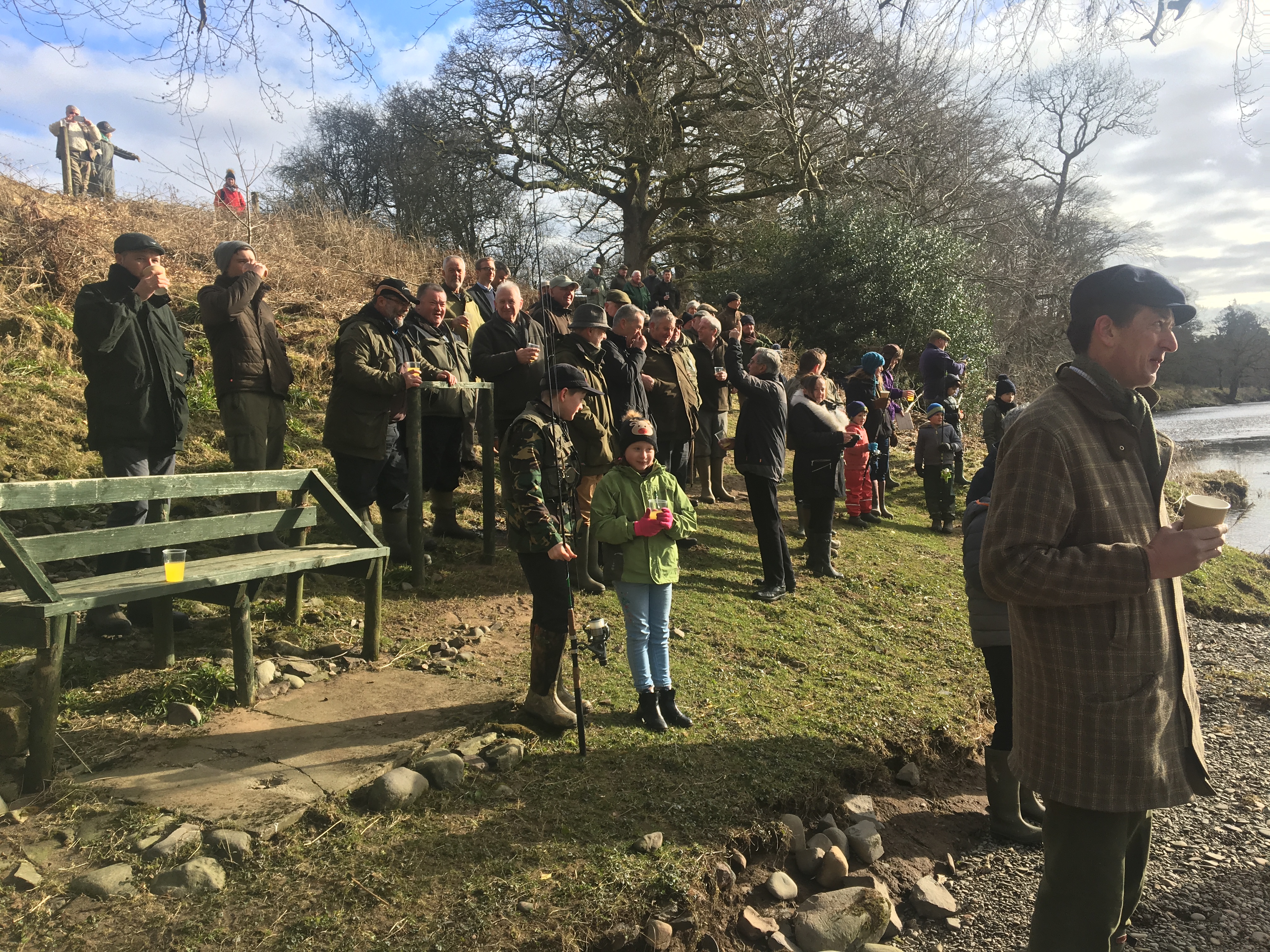 A cold day with flakes of snow blowing on the wind welcomed the start of the Salmon Fishing season for 2018 on the River Nith.  This year’s opening ceremony was held at Dalswinton Estate, near Auldgirth.  The event was well attended by anglers from across Dumfries and Galloway, net fishermen, politicians and members of the “Nith Young Anglers” club who had the privilege of taking the “first cast”.  Mr Davey Kempsell gave a short speech ahead of proceedings followed by a toast to the river given by MSP Joan McAlpine.  Piper Sandy Dunlop piped a procession to the river where one of our young anglers Andrew Millar, captured a well mended kelt, his first salmon.